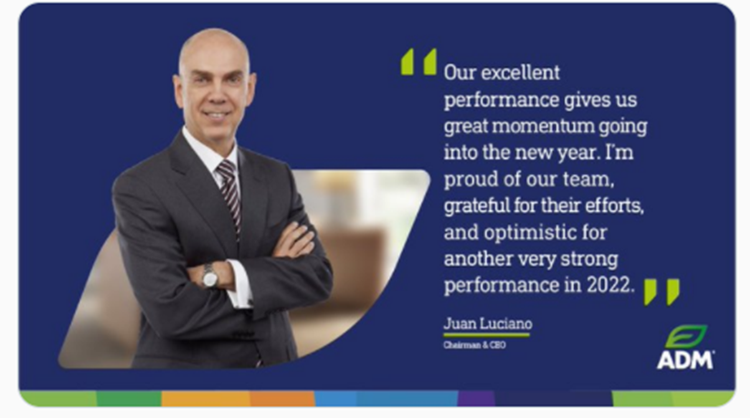 CHICAGO–(BUSINESS WIRE)– ADM (NYSE: ADM) today reported financial results for the quarter and year ended December 31, 2021.