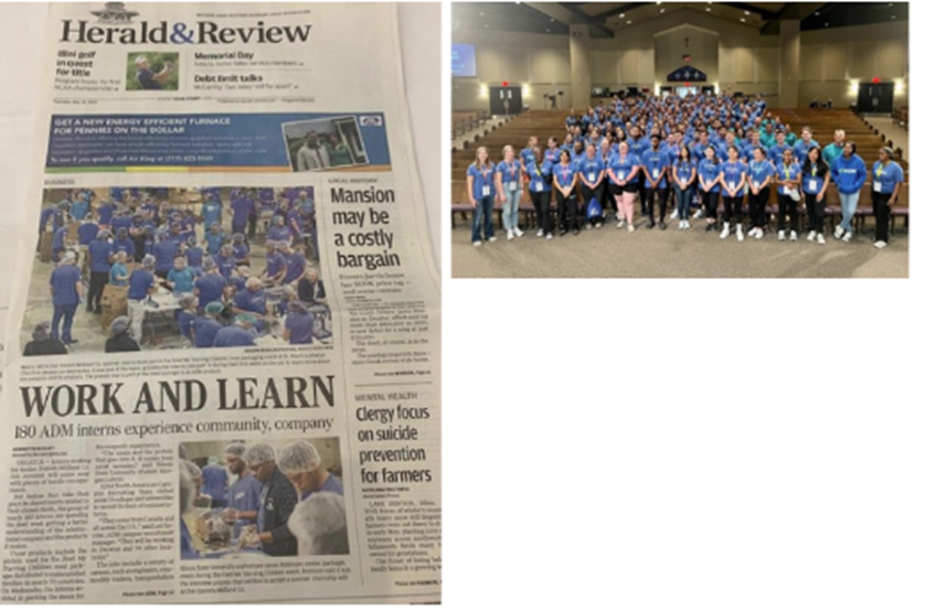 This summer 181 interns have been selected, seen below during orientation week at ADM’s NAHQ in Decatur, IL.