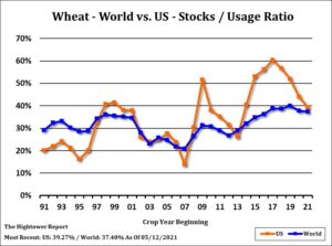Choppy wheat trade. WN settled near 6.98. Range was 6.92-7.18. Favorable US SRW crop conditions, slow export interest and weak tech picture offset a lower US Dollar. KWN settled near 6.48. Range was 6.42-6.70. Annual KS crop tour estimate of the KS crop could weigh in prices. USDA estimated US winter wheat HRW ratings were mixed this week with TX rating dropped by 5 pct to 25 G/E, OK rating held steady at 59 pct G/E. KS rating improved 1 pct to 54 G/E. Spring wheat planting at 85 pct versus 71 average. Dry topsoil moisture is allowing a rapid planting pace. China April wheat imports were near 900 mt. Season to date imports 3.8 mmt and up 147 pct yoy. USDA estimated World 2021/22 wheat crop near 789 mmt vs 776 this year. Domestic feed is 158 mmt vs 157 this year. Trade near a record 202 mmt vs 199 this year. End stocks 295 mmt vs 294. Russia crop est near 85 mmt vs 85 this year. Exports 40 mmt vs 39 this year.